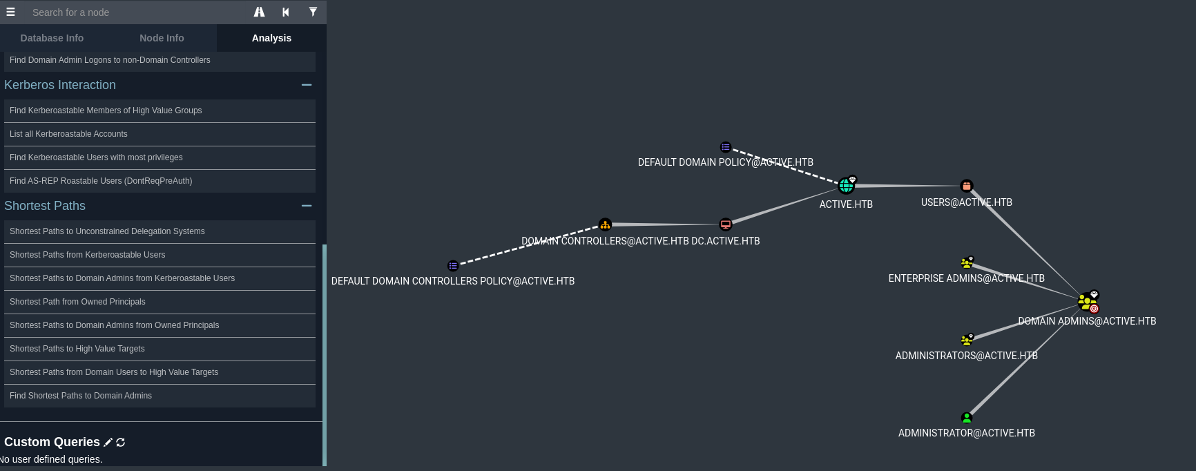 If we upload this zip file we created with the previous command into bloodhound we can visualize the Active Directory structures.