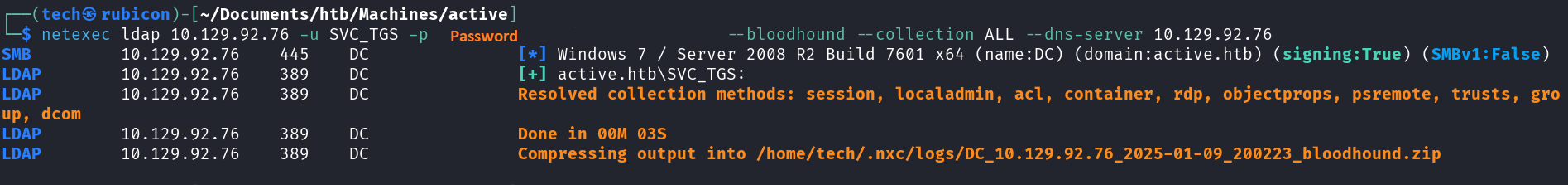 # netexec ldap 10.129.92.76 -u SVC_TGS -p '[Password]' --bloodhound --collection ALL --dns-server 10.129.92.76